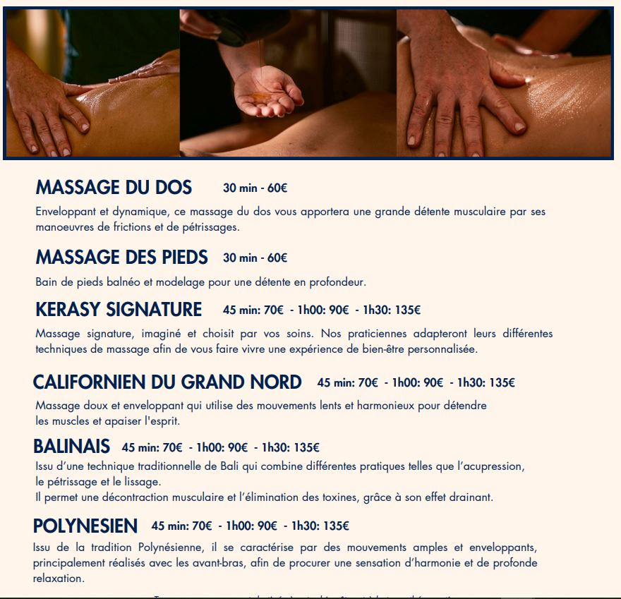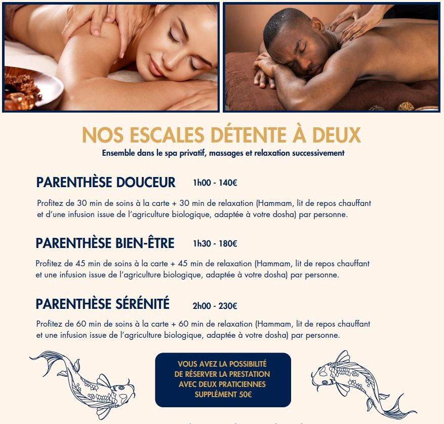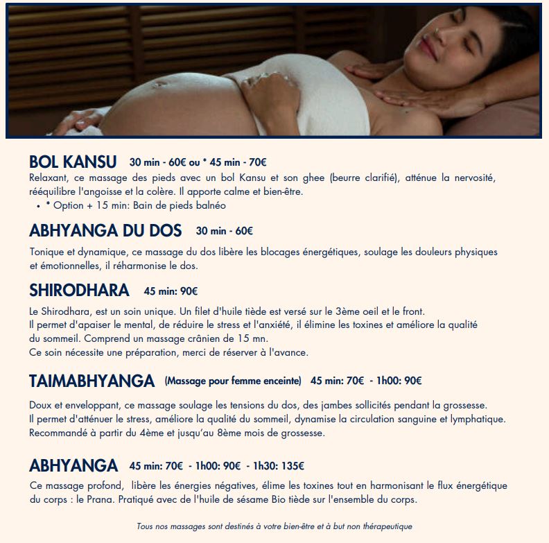 Choisissez le soin qui vous fait plaisir puis contactez-nous pour réserver le créneau de votre choix.